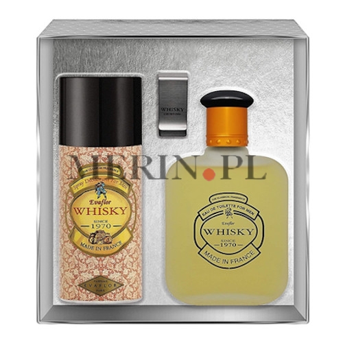 Strona główna » Pachnące Prezenty » ZESTAWY DLA MĘŻCZYZN » Evaflor Whisky Men - zestaw, woda toaletowa 100 ml, dezodorant 150 ml, klips